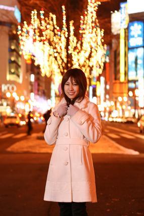 お店の前やイルミネーションの所で撮影をしていました。